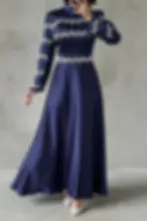 Saten İncisi: Volan Kol Zincir Detaylı Tesettür Abiye Lacivert