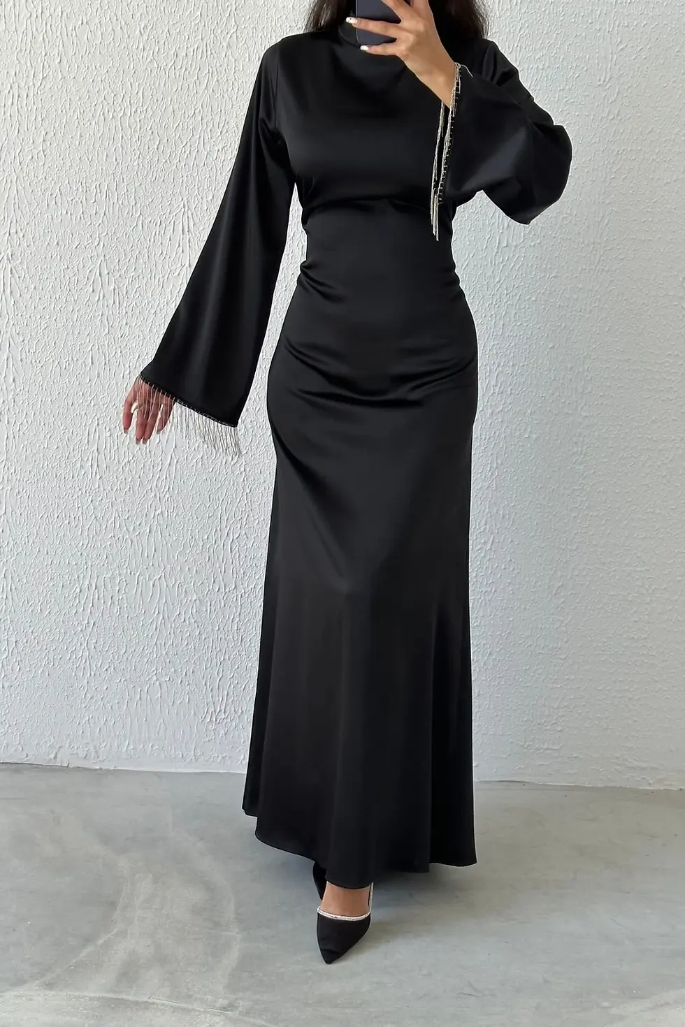 Saten İncisi: Volan Kol Zincir Detaylı Tesettür Abiye Taş